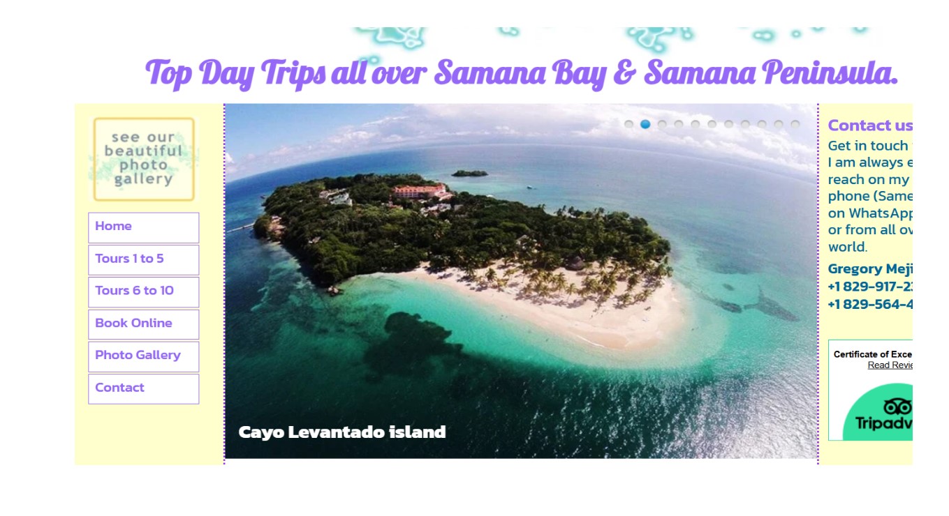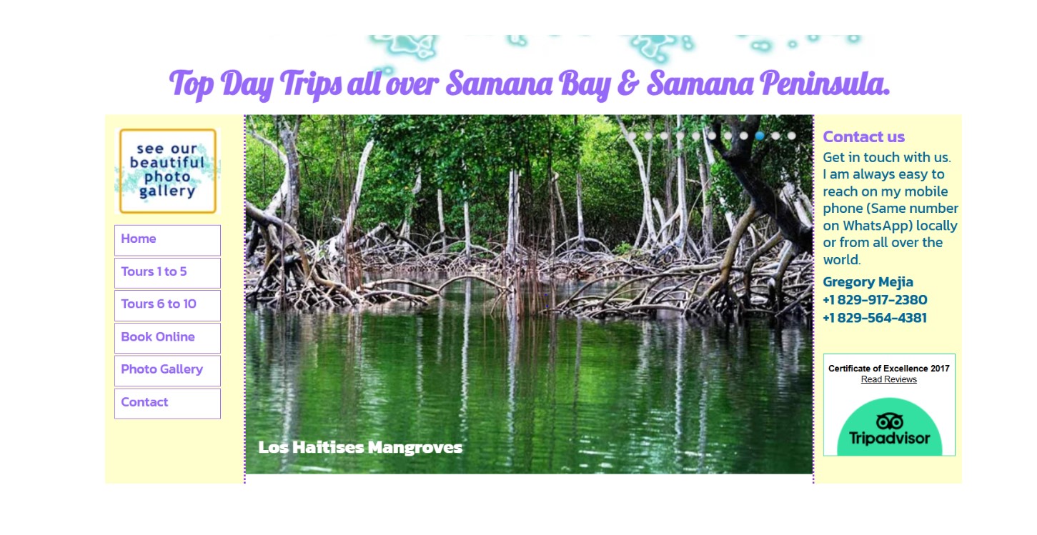 Reconnu dans notre domaine pendant plus de 20 ans et avec d'excellentes critiques dans Trip Advisor, nous proposons des excursions et des visites dans la baie de Samaná et dans toute la péninsule de Samaná pour les hôtels et les passagers de croisière.